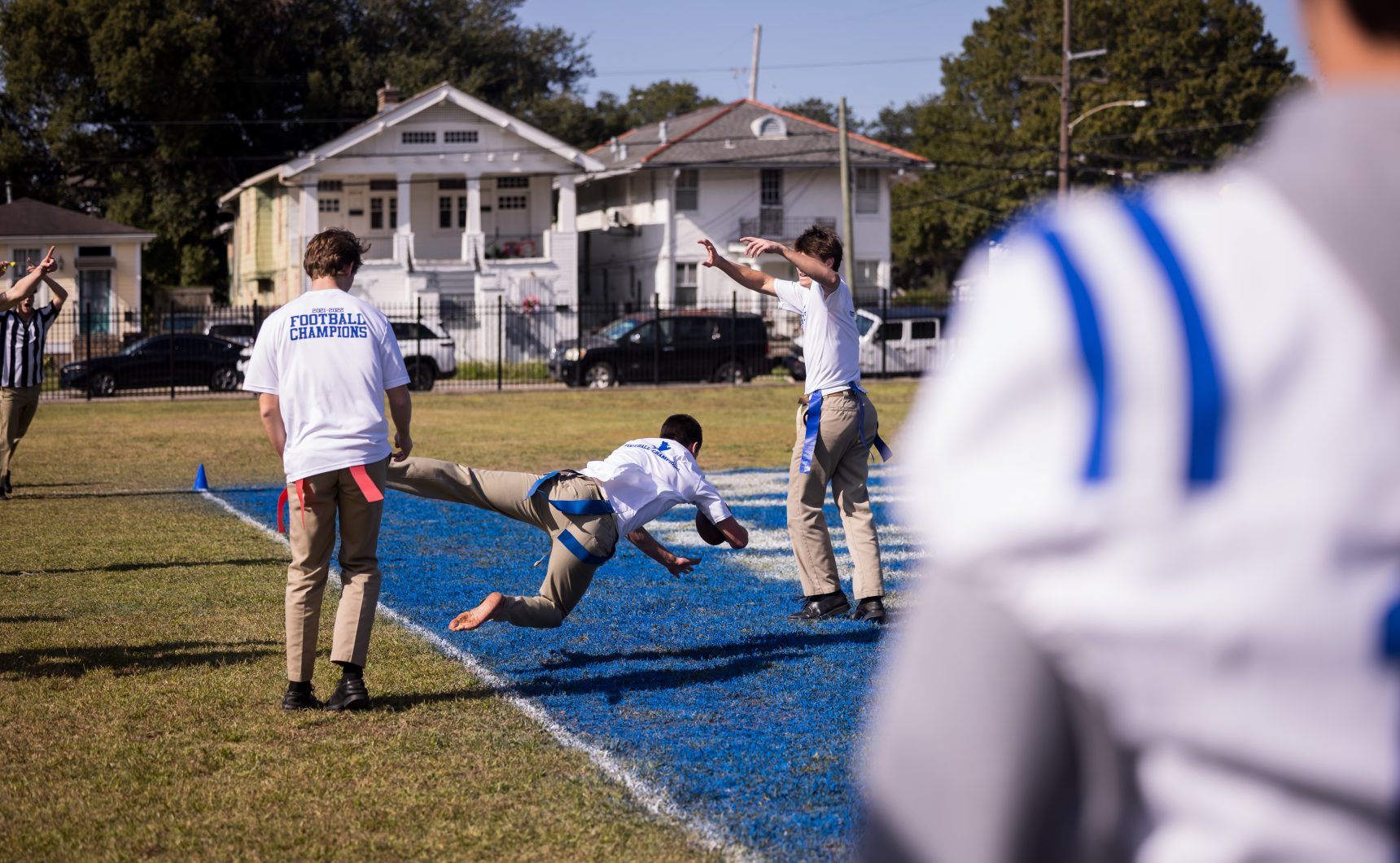 In a wild flag football intramural finale, the juniors stunned the seniors with a last-second diving catch into the painted Blue Jays end zone on Will Clark Field. The championship came down to a single play—and the juniors delivered, sealing their victory in dramatic fashion.