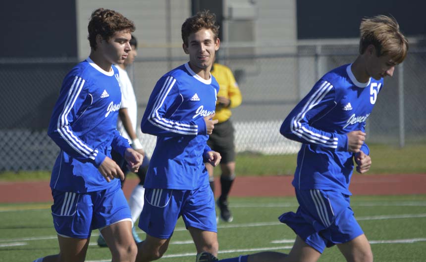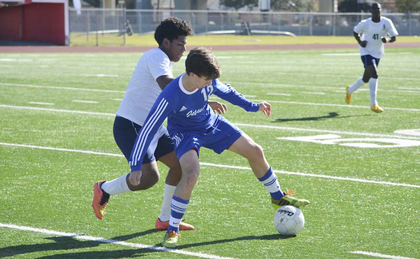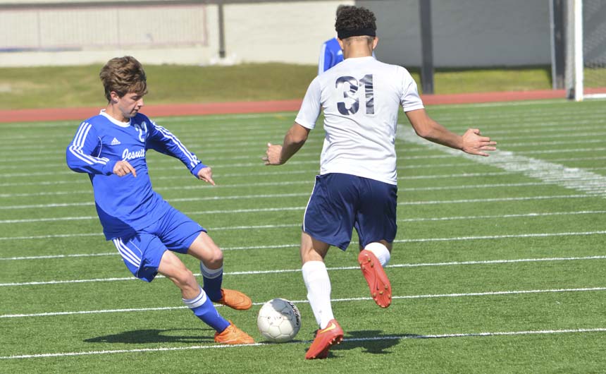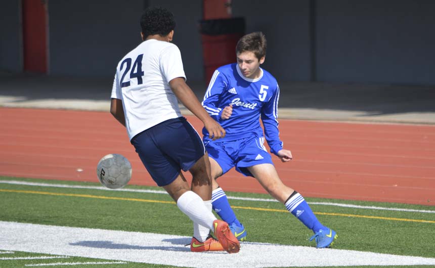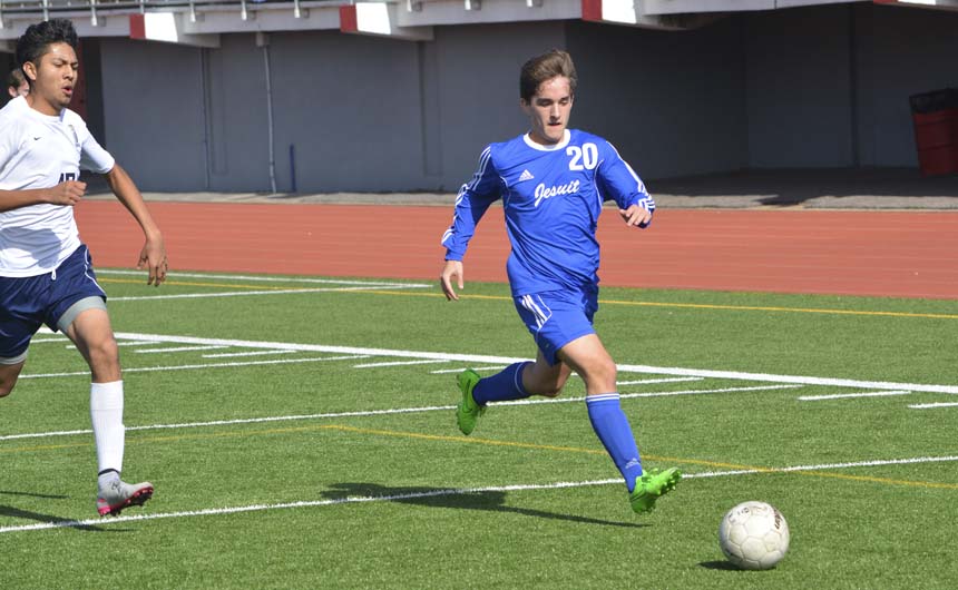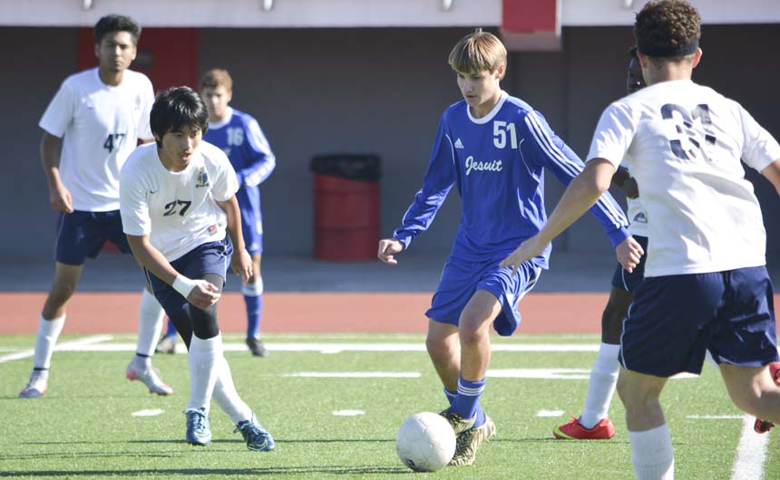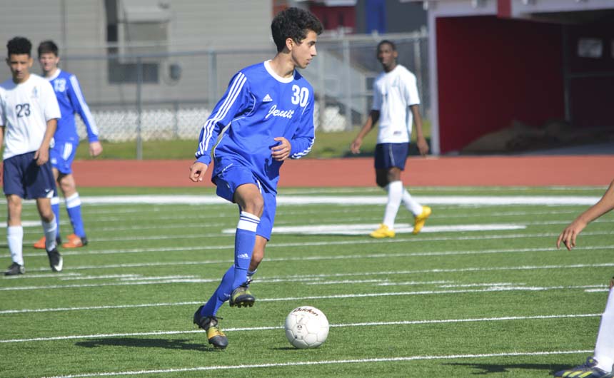 Junior Hunt Navar scored three goals in an eight-minute span of the first half to lead Jesuit’s soccer team to a 5-0 district win over L.W. Higgins on Saturday, Jan. 16 at Hoss Memtsas Stadium.