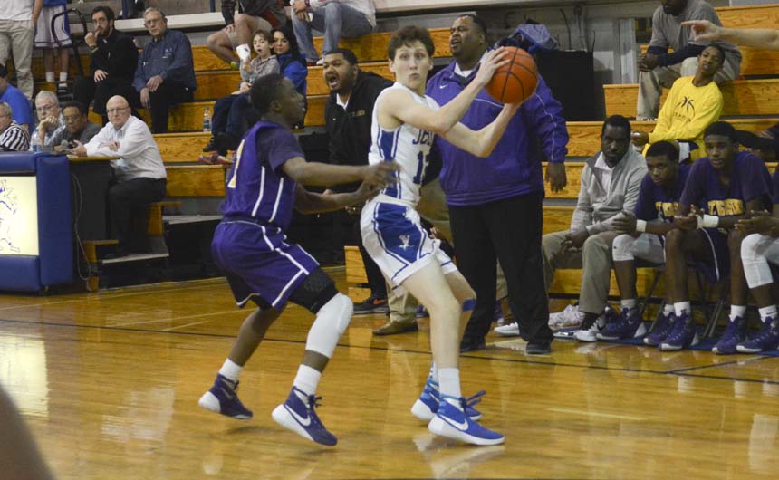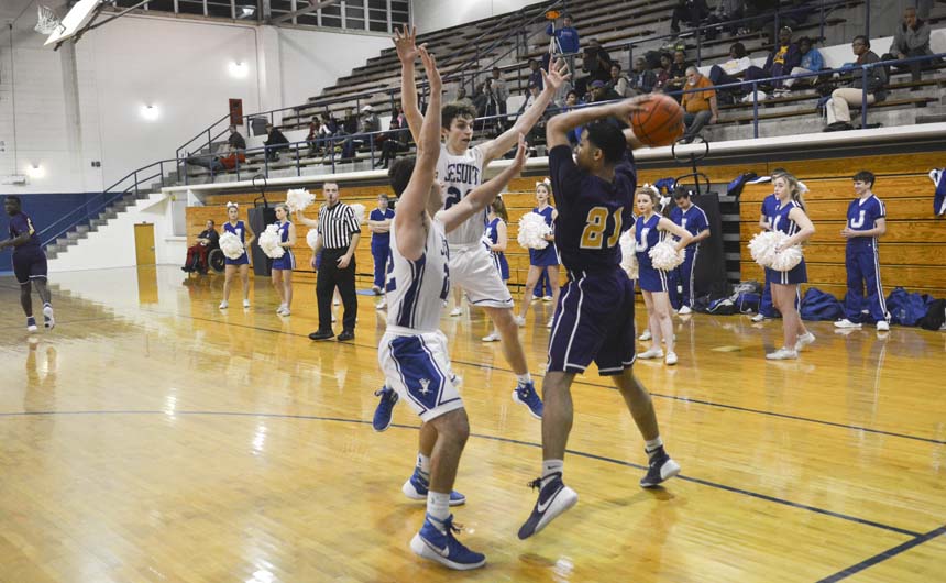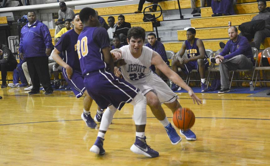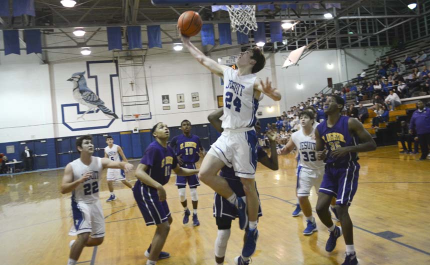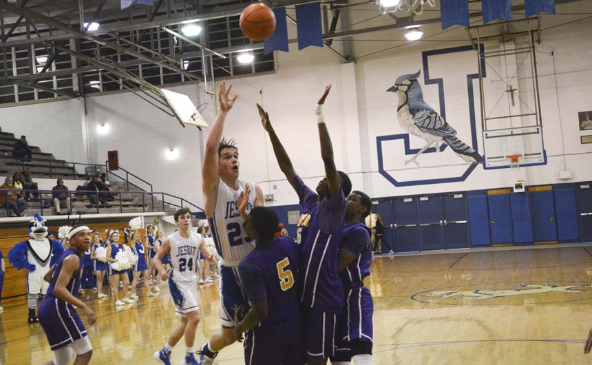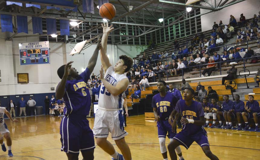 Jesuit’s basketball team held heavily favored St. Augustine to 38 points–25 below their season average–on Tuesday. Jan. 26 at the Birdcage.