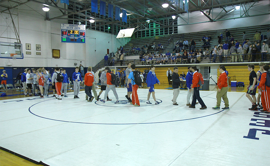 The Blue Jay wrestling team handily beat the Archbishop Rummel Raiders on Wednesday, Jan. 27 in front of a large and vocal home crowd.