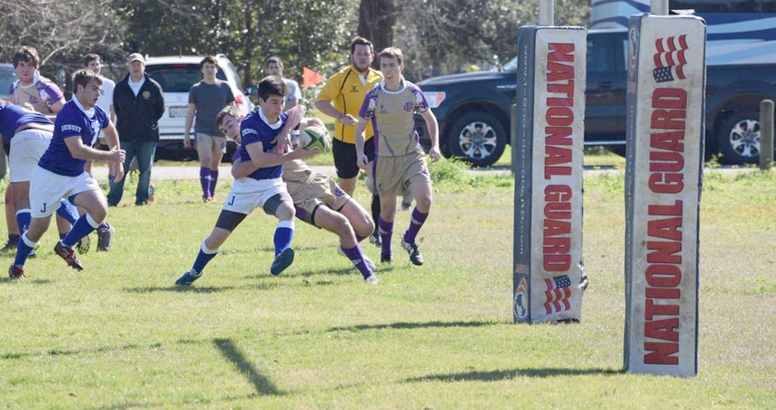 Jesuit got ahead of the Purple Wave, 5-0, on a nicely executed play that saw sharp passing from junior Jack Gab to junior Jacob Whitlow to senior Alex Esparza. Esparza ran it over the goal line for a try (score). The conversion was no good.