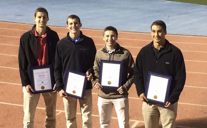 Four Jesuit seniors were named to the 2015 Louisiana High School Athletic Association All-State Academic Scholar Boys’ Soccer Composite Team based on maintaining a 4.0 on an unweighted scale throughout their high school years while playing soccer. They received their award certificates at the Louisiana State Championship Soccer game on Saturday, Feb. 27. The students featured from left to right are Patrick Rye, Connor Maheu, Edwin Grant Laizer, and Cole Retif.