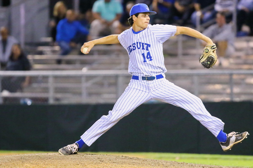Jesuit’s game plan was simple, and Coach Joey Latino was the first to admit his team pretty much stuck to it: hit fastballs early in the count and avoid the wicked little slider thrown by the Crusaders’ starting pitcher Blair Frederick. The slider is a type of fast pitch with a slight curve in the opposite direction of the throwing arm.