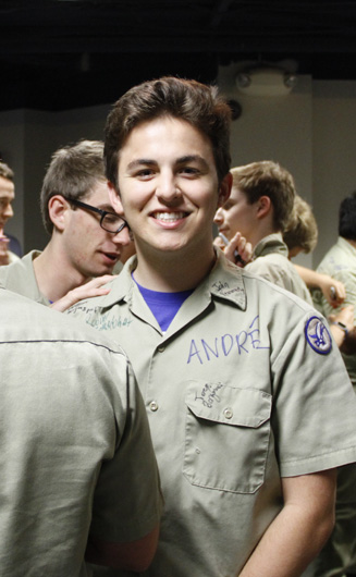 Gregory Fortier is all smiles as he gets his shirt signed by classmates. -