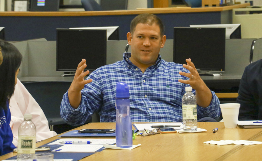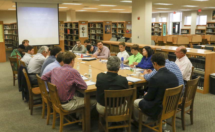 The morning round-table discussion focused on the attributes of good student leadership at Jesuit. -