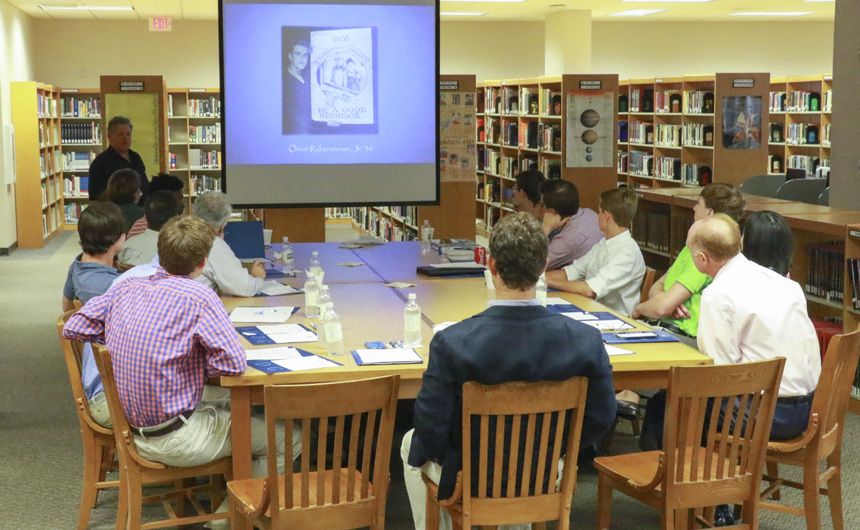 The morning session began with a presentation by alumni director Mat Grau ’68, focusing on student life at Jesuit through the years. Student leaders were asked to consider how difficult Blue Jay Spirit is to define and to reflect on their role in preserving that Spirit in their various activities as student council leaders. The presentation sparked a lively round-table discussion featuring three alumni — Bubby Valentino ’65, Brian Gibbs ’90, and Matt Robért ’12 — whose experiences at Jesuit shed light on the formation of Blue Jay Spirit in their respective eras.