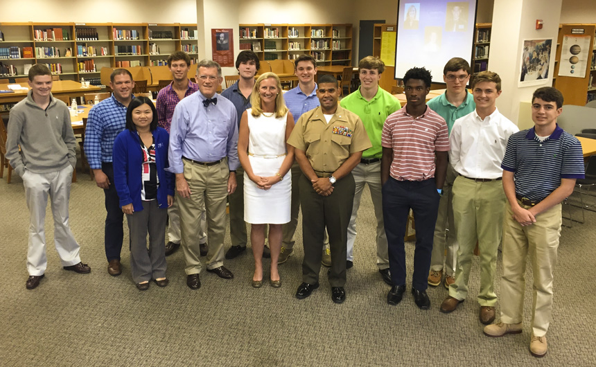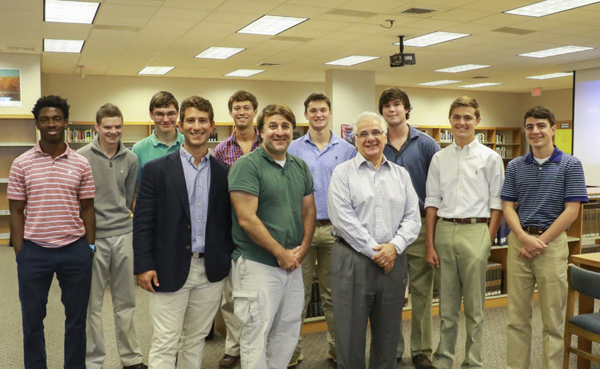 After enjoying the company of their guests during lunch at Katie’s Restaurant, the leadership team resumed in the afternoon with a panel discussion featuring notable leaders in the New Orleans community. Those special guests included Dr. Jennifer Couvillon, Lt. Col. Brandon Gregoire ’91, and Honorable Dennis Waldron (a former Orleans Parish Criminal District Court Judge, now retired). Their combined experiences in leadership were a valuable resource to today’s Blue Jays.