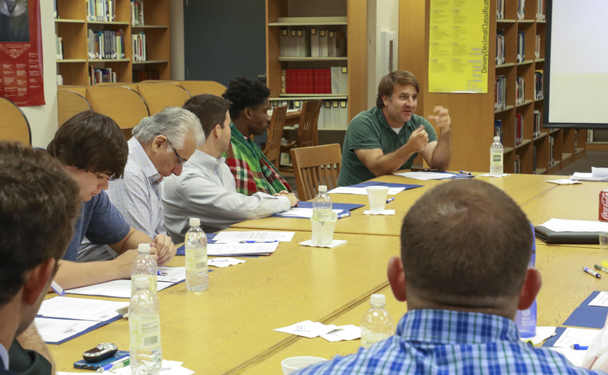 Alumni Director Mat Grau opens the workshop with a presentation about bringing the rich tradition of Jesuit High School to life in 2016.