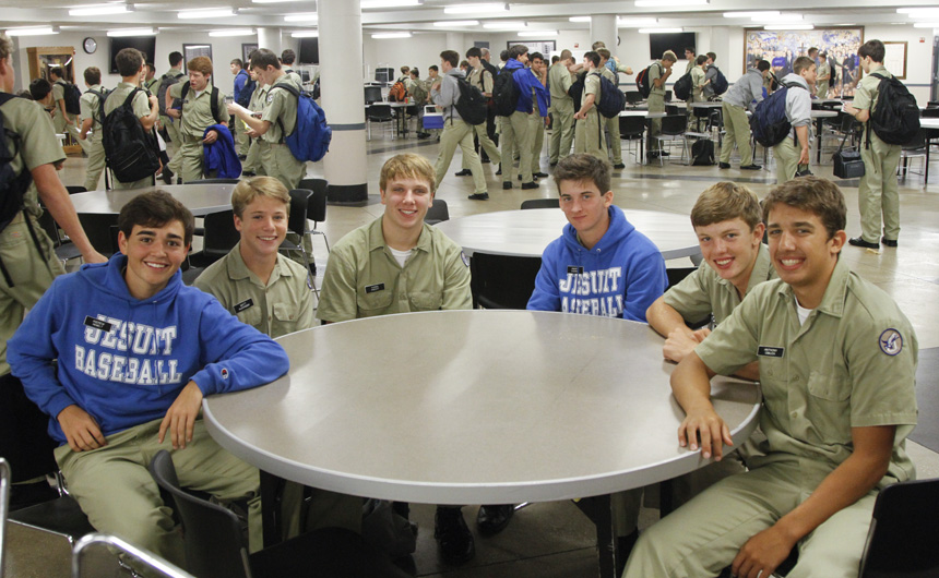 Juniors (from left) Andrew Hemelt, Matt Alexander, Kaden Knecht, Andrew Cashman, Collin Miller, and Anthony Ciblich claim their spot in the student commons.