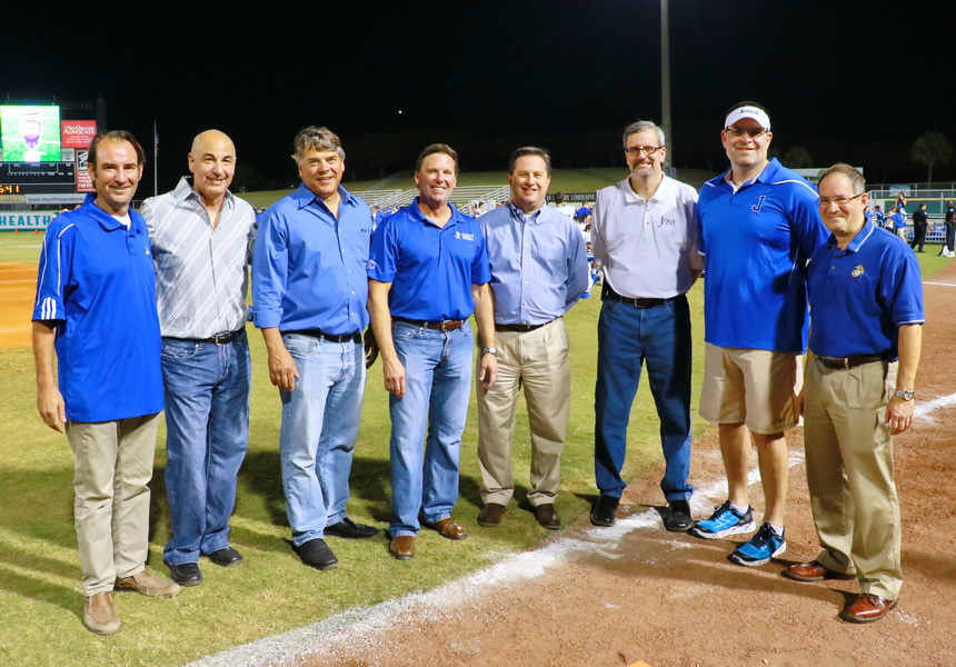 At the Jesuit – Brother Martin game, Jesuit High School and the New Orleans Zephyrs thanked and recognized Jesuit’s Class of 1983 for its incredible generosity over the past 20 years. Among the Class of 1983’s Turkey Drive Board of Directors are, from left, Malcolm Schwarzenbach, Robert Sudderth, Stan Gelpi, David Martin, Jr., Rene Alvarez, Luis Ingles, John Hazard (2016 chairman), and Eric Derbes. Other board members who could not attend the game are James Moises, Danny Sobrepera, and Mike Varisco. Congratulations to these members of the Class of 1983 for leading their classmates in giving of themselves for the benefit of others.