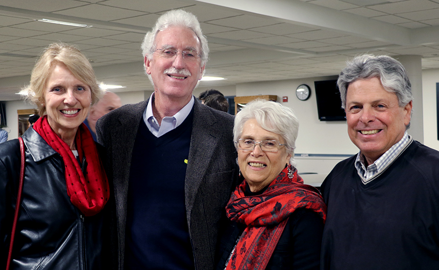 Charlene and Jay Baudier '68 visit with Leah and Mat Grau '68. -
