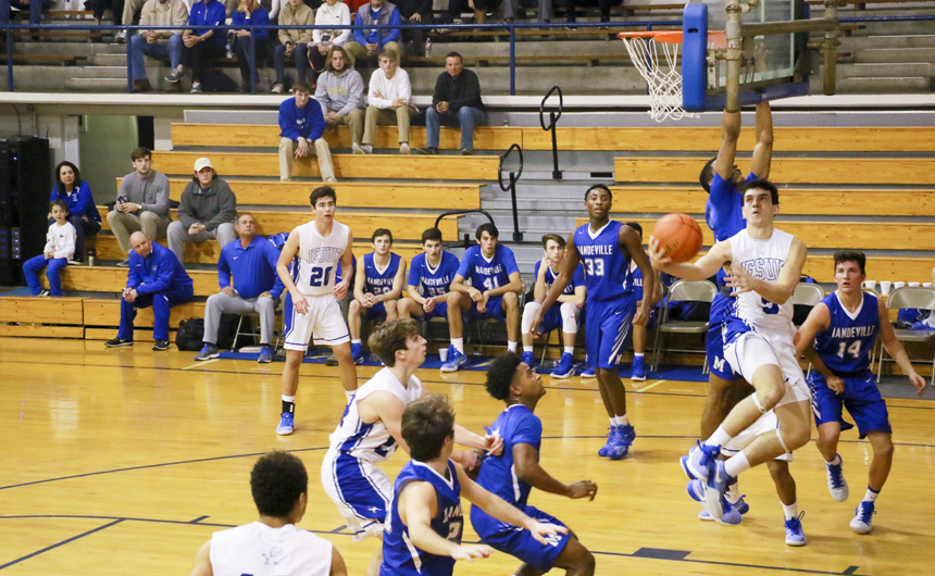 The Blue Jay basketball team reached double digit wins on the season, defeating Mandeville in the Birdcage on Tuesday night to improve its record to 10-4.
