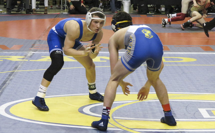 Luke Eccles takes on Cole Houser of St. Paul's in the 120 semifinal match. -