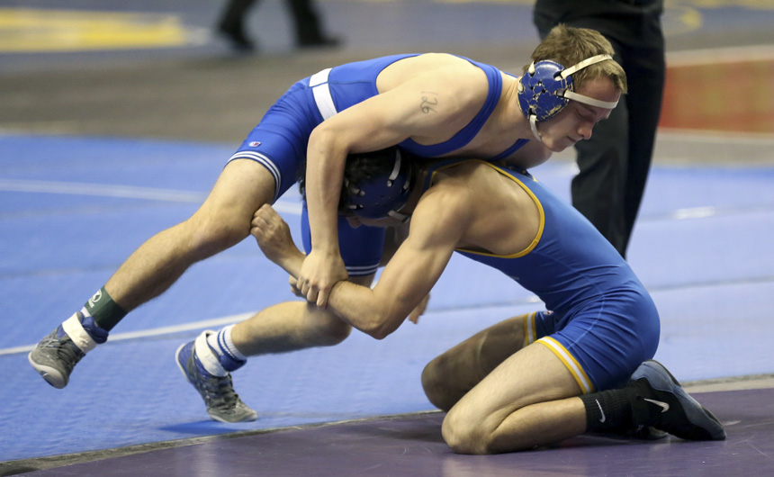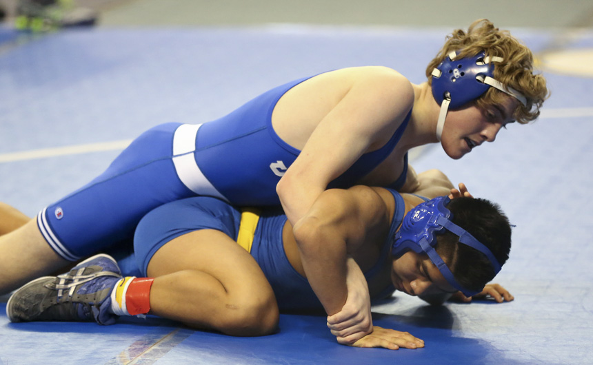 Paul Treuting takes on Jestin Dunn of St. Amant during their second round 170 match. -