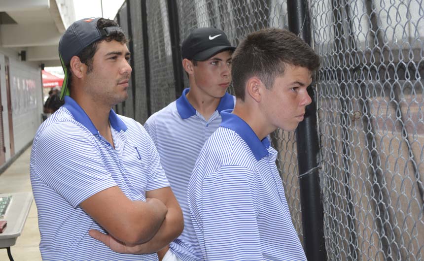 Leo Seoane, Sid Trouard, and James Henican root for their teammates through the fence. -