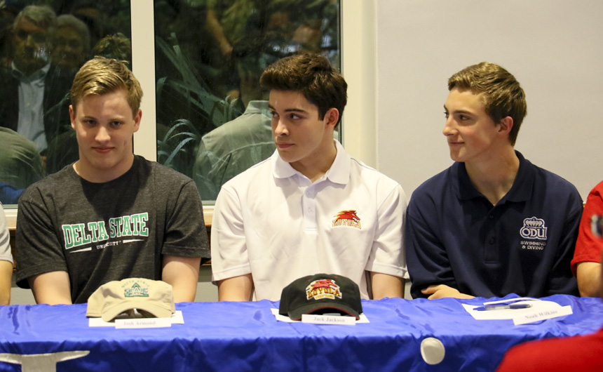 On May 3, fifteen seniors at Jesuit High School committed to continue their athletic and academic careers on the collegiate level. With parents, family members, friends, and teammates looking on, the almost-Blue Jay alumni, representing six sports, signed commitments to attend twelve different universities.