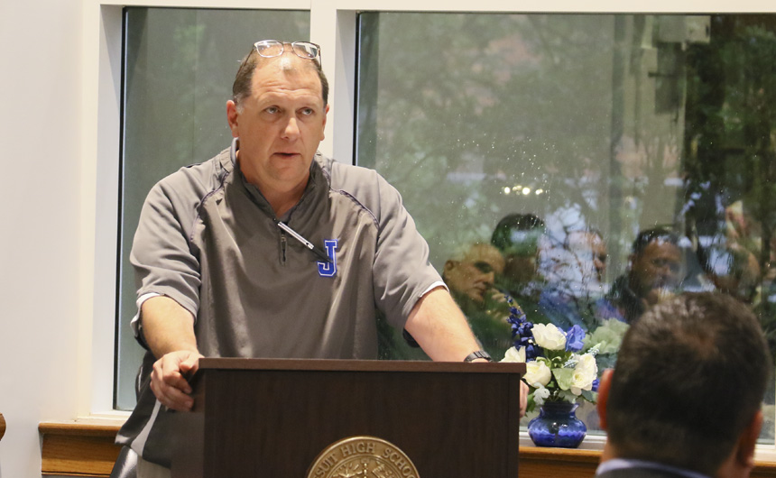 Athletic director Dave Moreau offers a final congratulations to Jesuit's student-athletes and asks them to remain connected to their high school alma mater. -