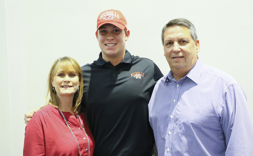 Head football coach Mark Songy speaks highly about Richard Besselman (Cornell University), Jake Chanove (Ball State University), Peyton Cox (University of Mississippi), Corey Dublin (Tulane University), Cameron Maheu (Nicholls State University), and Connor Prouet (Tulane University). -