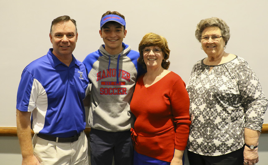 Head soccer coach Hubie Collins sings the praises of Hanover College commitment Chris Pitre. -