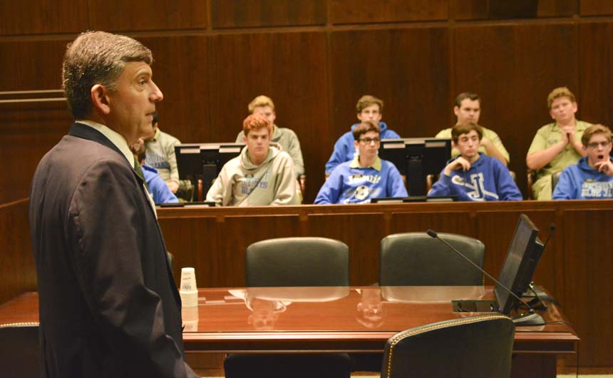Thirty-two Jesuit juniors had an opportunity to visit the U.S. District Court room of the Honorable Jay Zainey ’69 in conjunction with the New Orleans Bar Association’s annual Law Day on Tuesday, May 2.