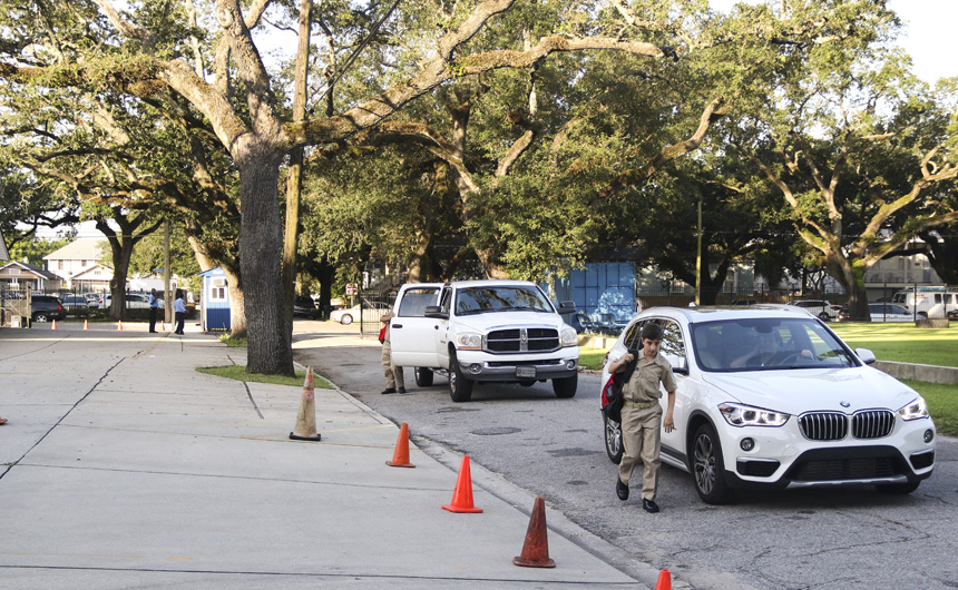 Students had the opportunity to put into practice some of the new security measures put in place to ensure the safety of the entire Jesuit community while on campus. The new drop-off and pick-up procedures also ran smoothly for the students coming to and leaving campus via Solomon St.