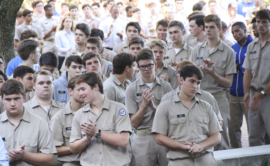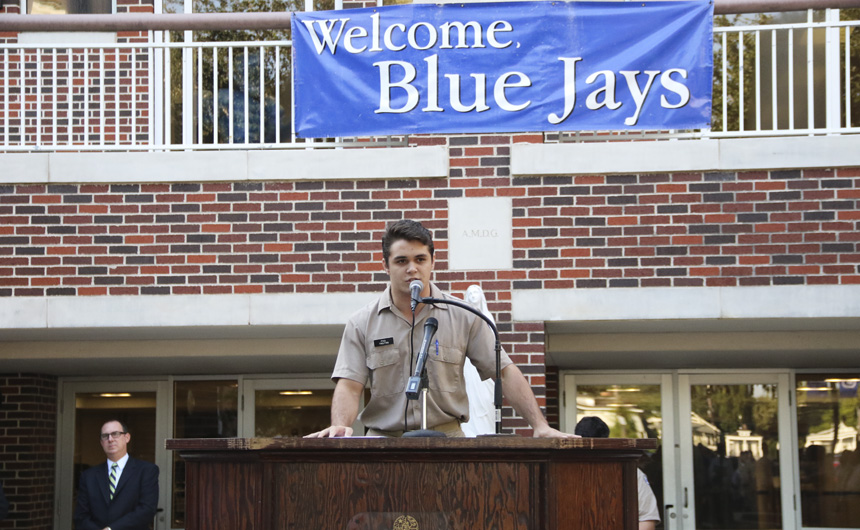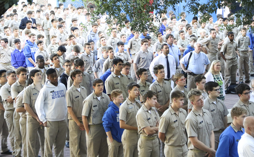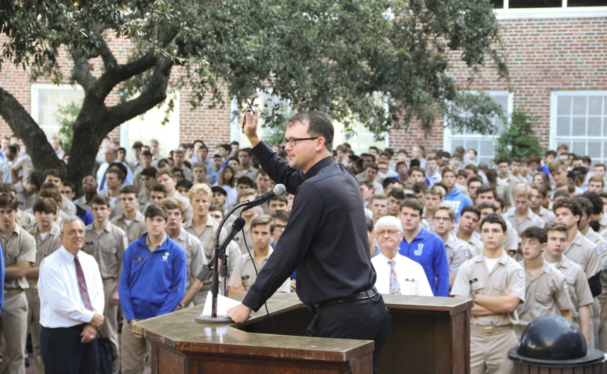 Just moments before, Jesuit’s principal Peter Kernion ’90 had similar words of encouragement about the opportunities of a new year. “I urge all of you to look at this school year as a fresh start, a new beginning. It is a chance for each of us to make the decision to work harder this school year, makes some changes for the better, and to grow in several different areas — academically, spiritually, socially, and in our commitment to service.”