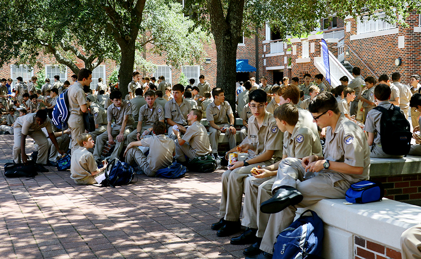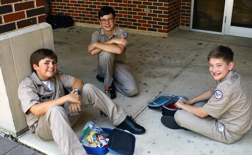 Students Devin Knott, Peyton Burkhalter, and Tyler Westfall are back in khaki after a restful summer. The first days of school allow students to catch up and foster the brotherhood that will develop over the course of the school year and last for the rest of their lives.