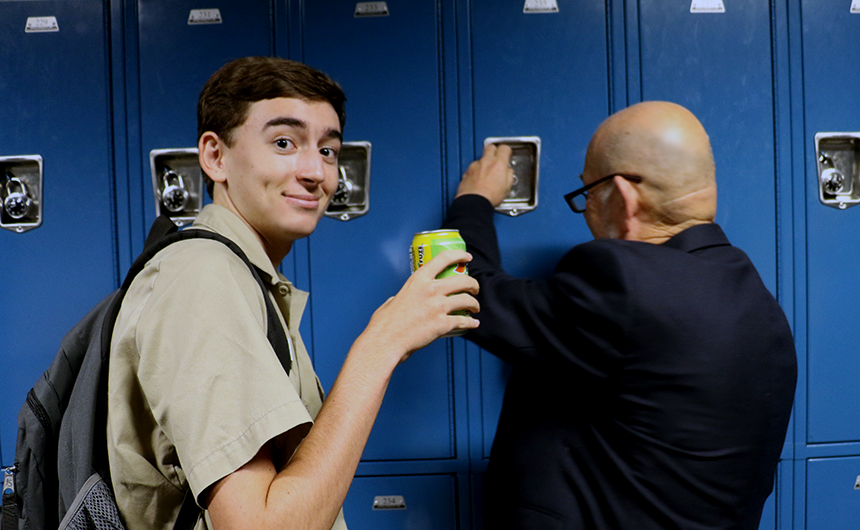 Senior Max Elvir gets a hand with his locker from prefect of discipline Top Abshire. -