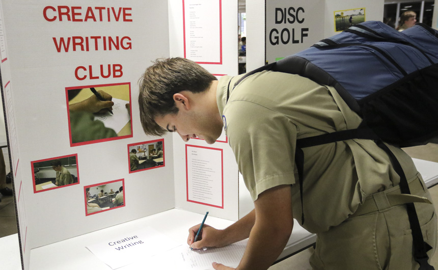Patrick Young adds his name to the member list for the Creative Writing Club. -