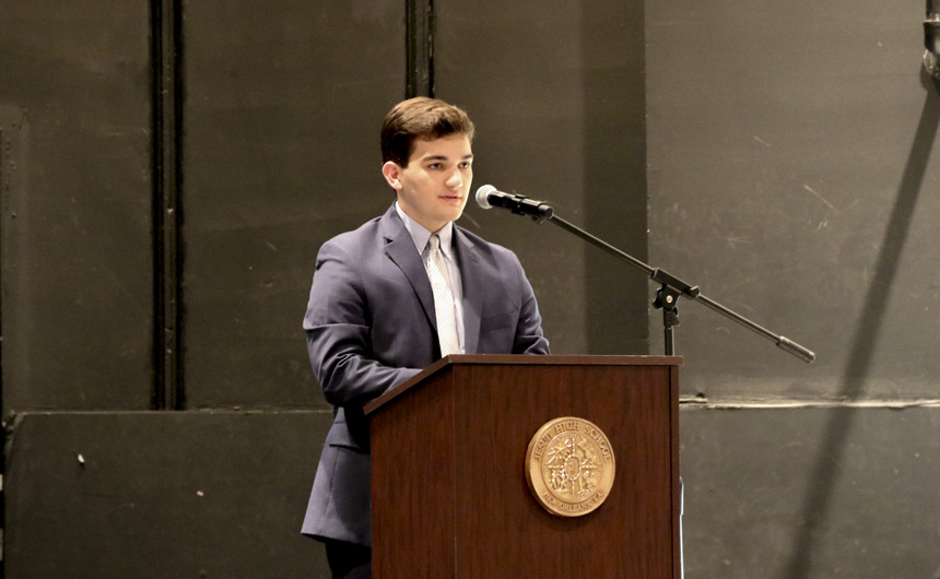 Fr. Christopher Fronk, S.J., offers a few words about the role of honor in the lives of the National Honor Society members. -