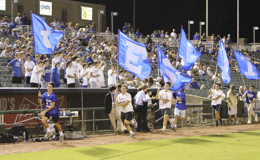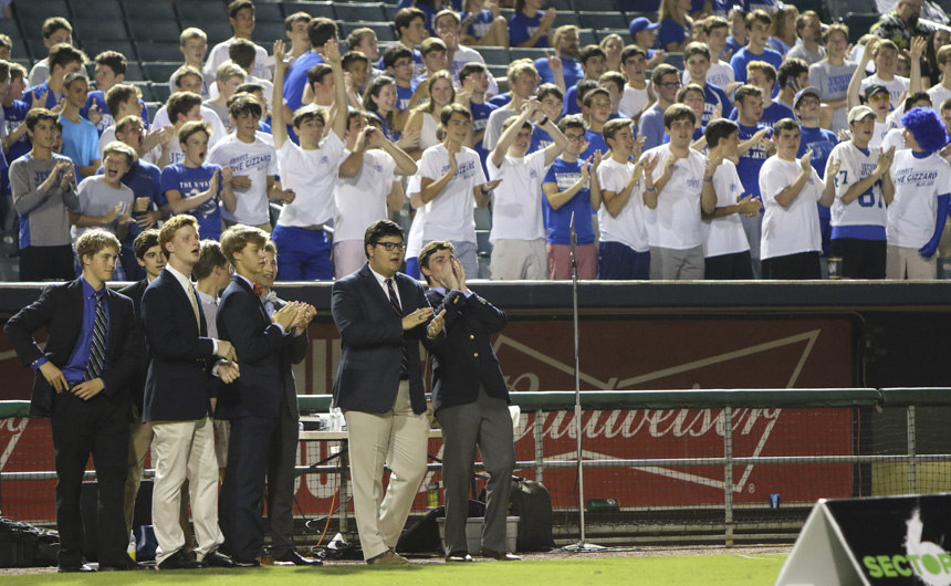 In victory or defeat, the Blue Jay brotherhood remains strong in the singing of the Alma Mater. -
