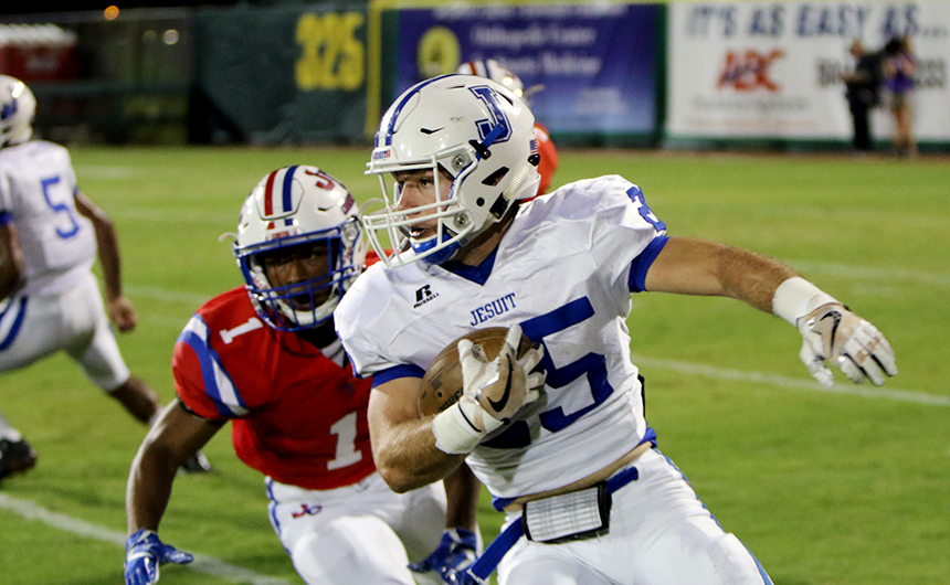 Jesuit lines up with John Curtis in their third district matchup at the Shrine on Airline. -
