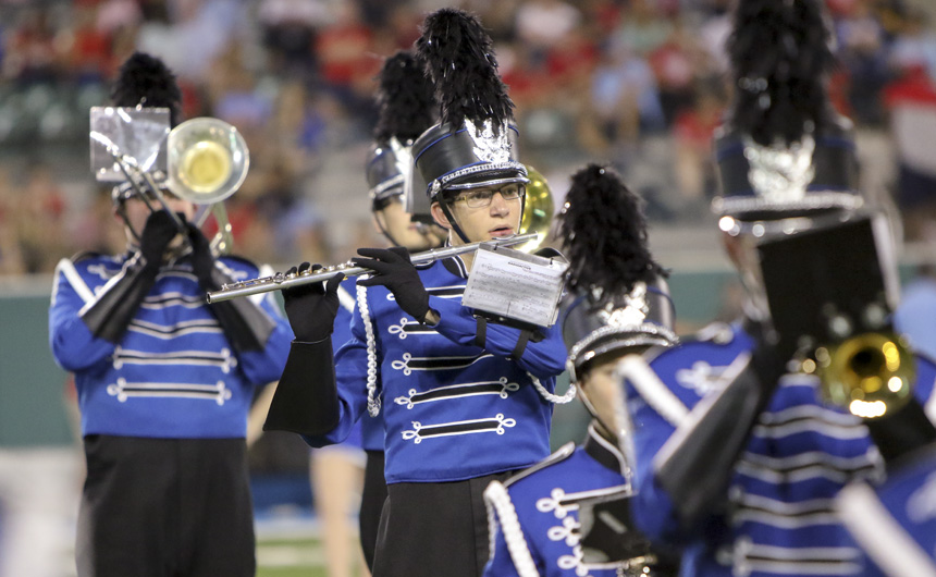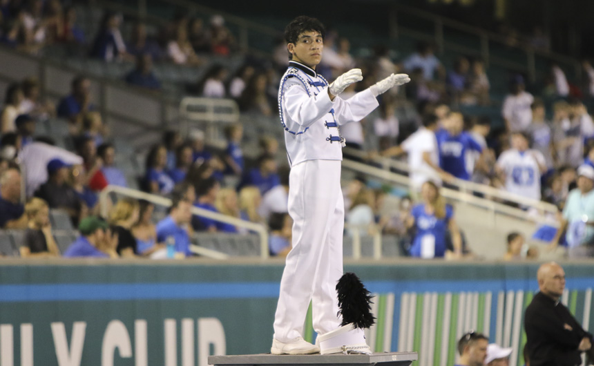 Drum major Chris Vasquez maintains a steady tempo during the halftime perfomance.