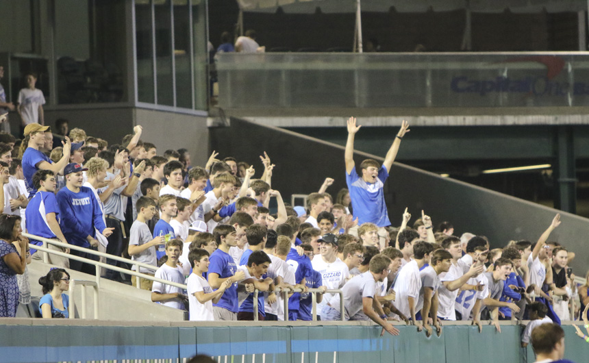 The student section makes some noise to encourage the defense. -