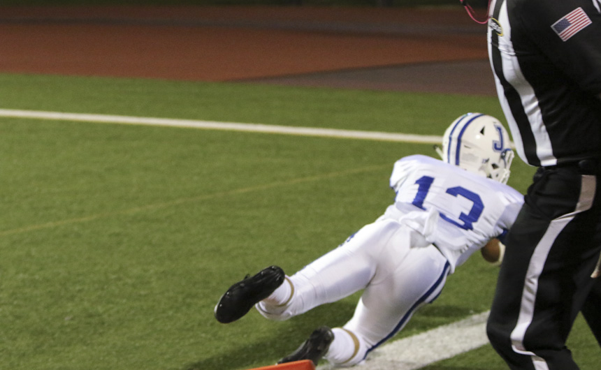...and crosses the goal line for the first Blue Jay touchdown of the night. -