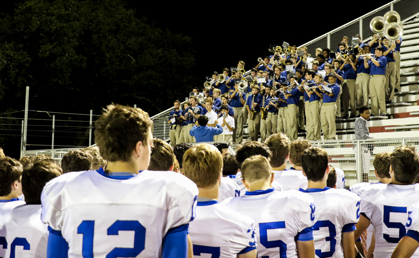 The band plays the Jesuit alma mater after the game.