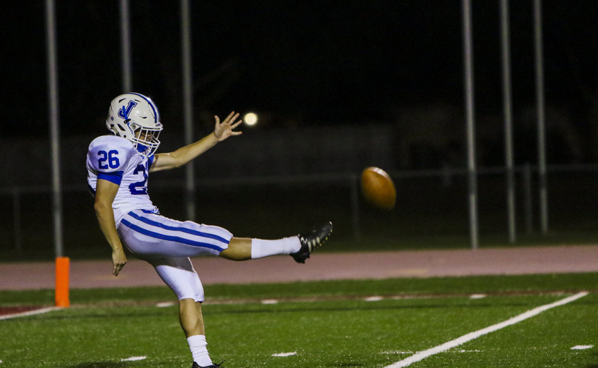Kicker/punter Max Scheurich punts this ball away on fourth down. -