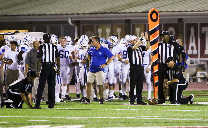 Destrehan’s special teams unit was again penalized for having 12 men on the field, so the score went back to 10-7 but with the Jays in possession of the ball, a fresh set of downs, and a good chance to go up 17-7. At 1:23, the Blue Jays were squarely settled in the driver’s seat of this football game. So it seemed, at least.