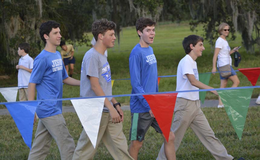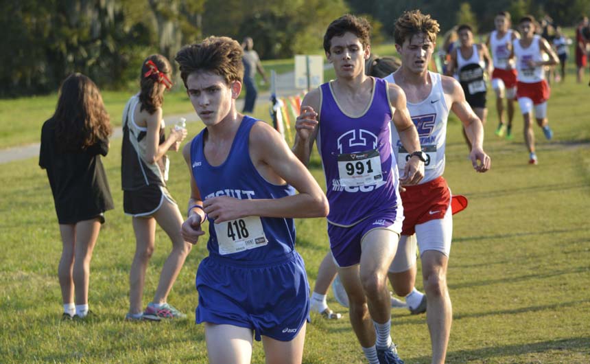 Peter Carr, Luke LaCour, and Cameron Cancienne keep pace. -
