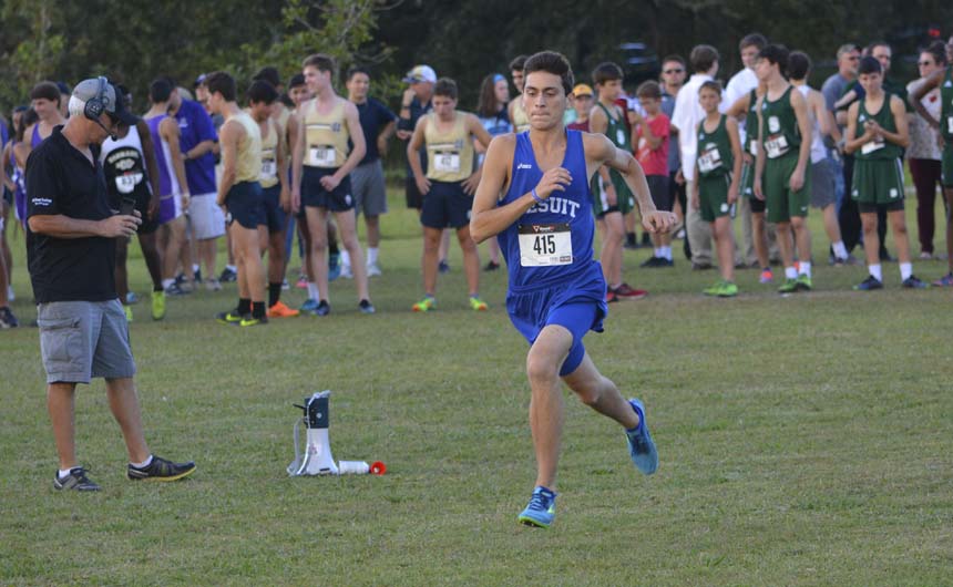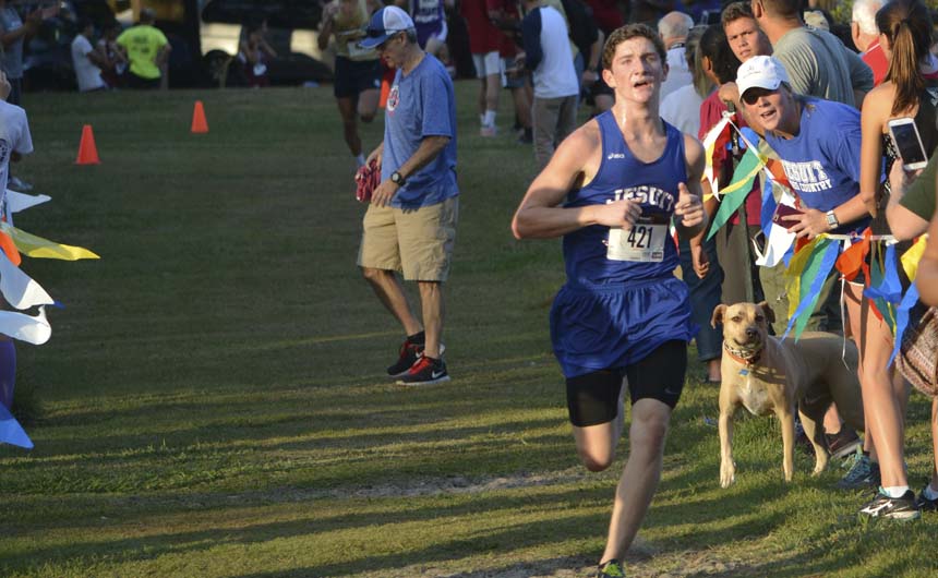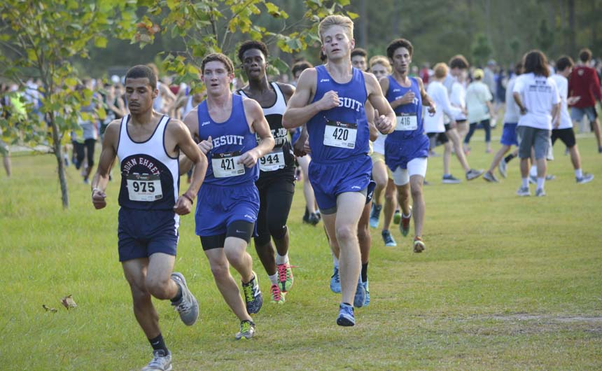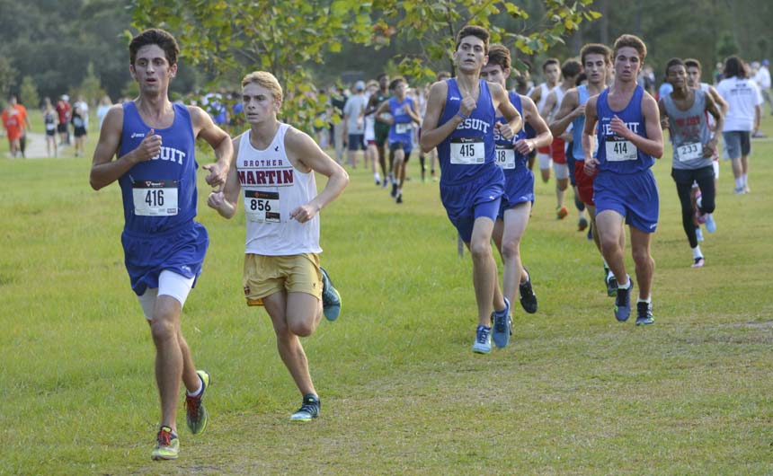 Brenner Rauch was first across the line with a time of 17:05 on the three-mile course, followed closely by fellow senior Chris Ross at 17:08. They were followed by senior Ryan Guillot (17:21) senior Peter Carr (17:26), sophomore Luke LaCour (17:30), and sophomore Cameron Cancienne (17:57).