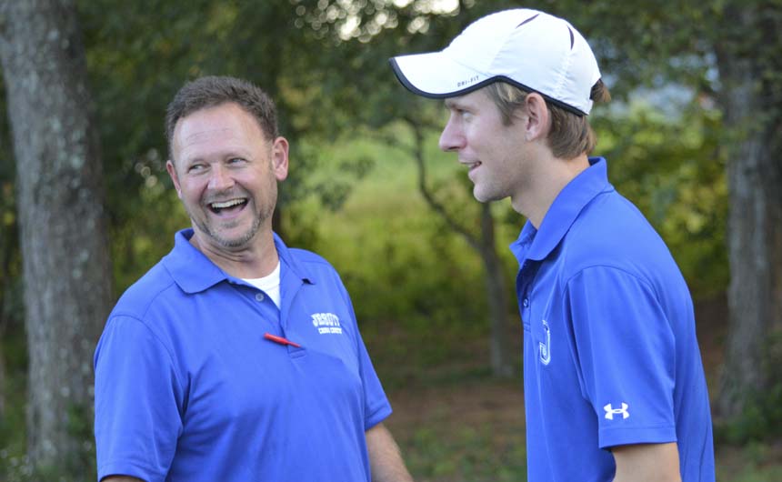 Chris Ross and Brenner Rauch take on the first of the vaunted tee box hills. -
