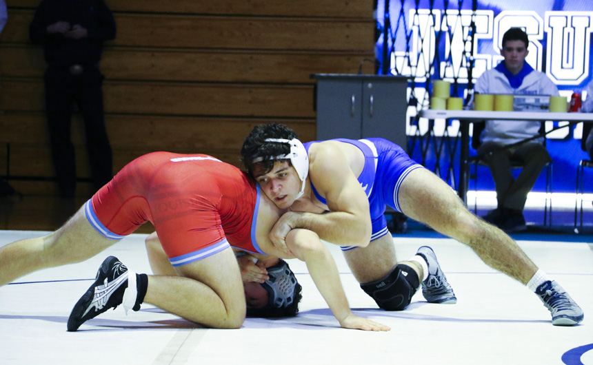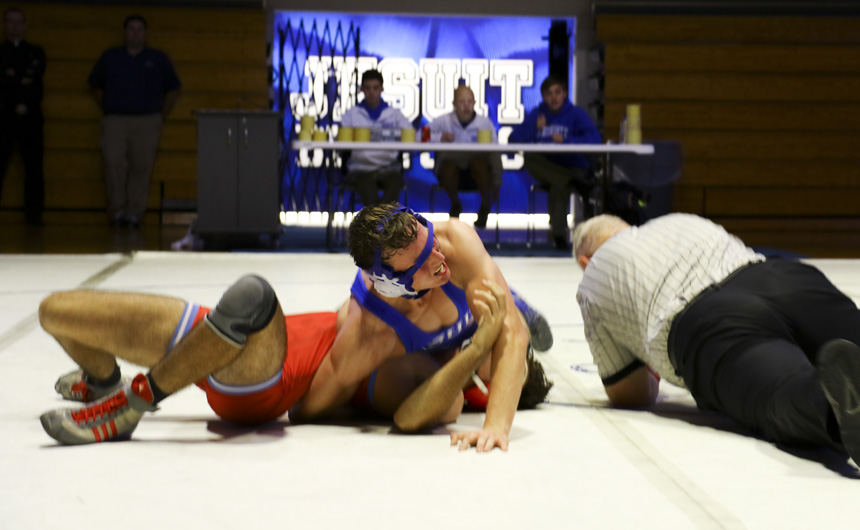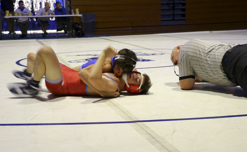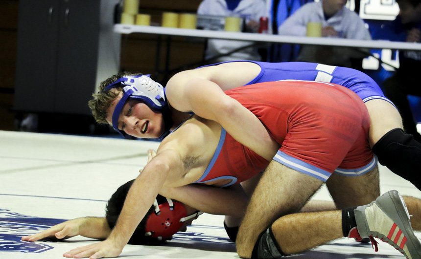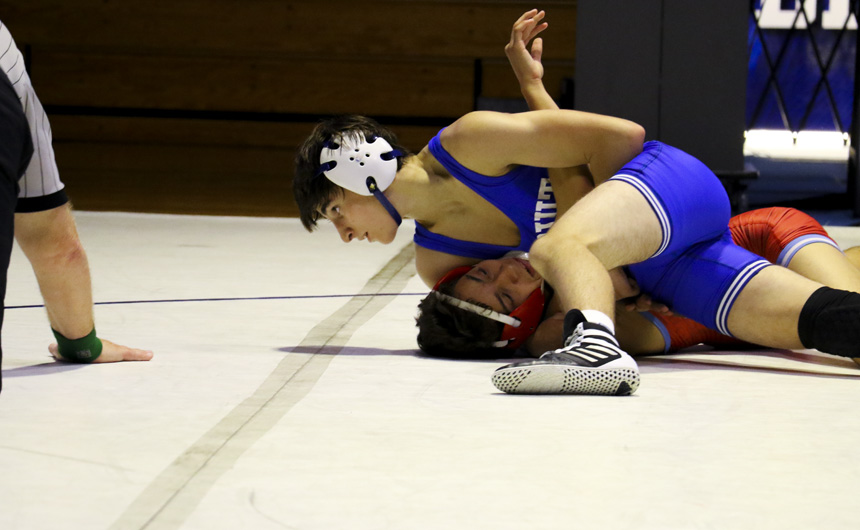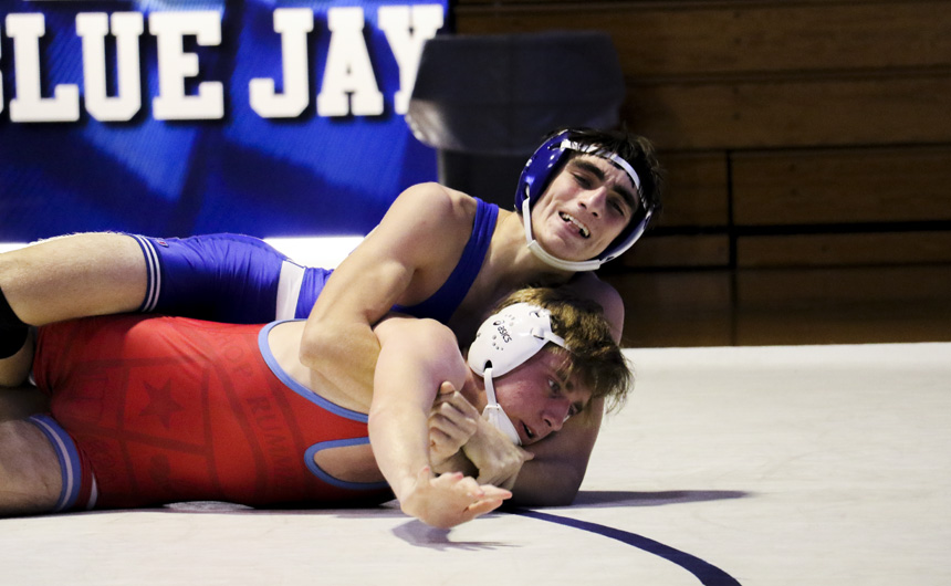Decisive wins were posted by 10 Blue Jay grapplers, including three straight pins by senior Nathan Koenig (160), senior Paul Treuting (170), and junior DJ Ferrier (182). Sophomore Max Holmes (106) also pinned his opponent.