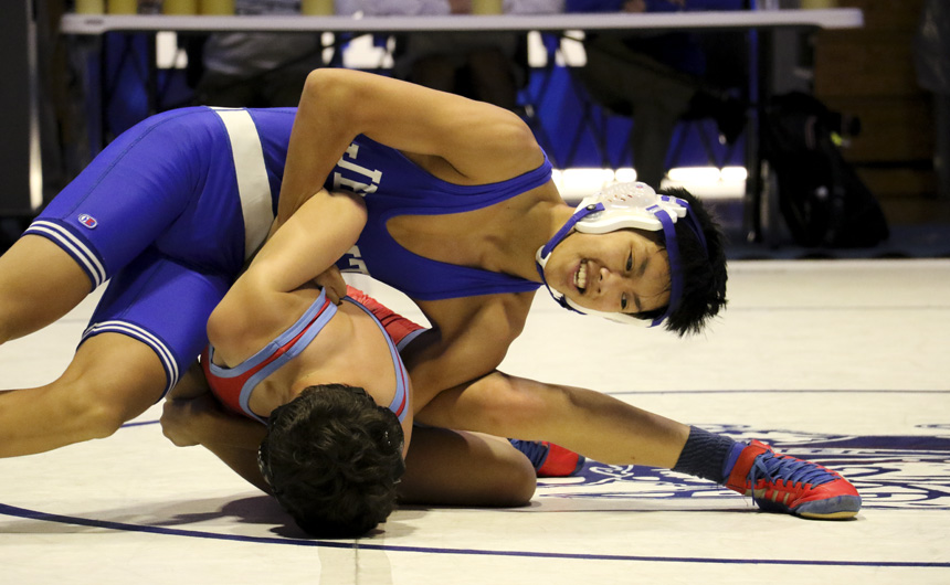 Junior DJ Ferrier pins his opponent,... -