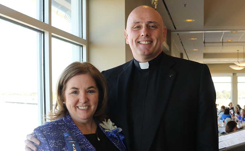 The event honored four mothers for their remarkable and incomparable volunteer work. Jesuit president Fr. Christopher Fronk, S.J., thanked each honoree and presented her with a beautiful Alma Mater Award pin.