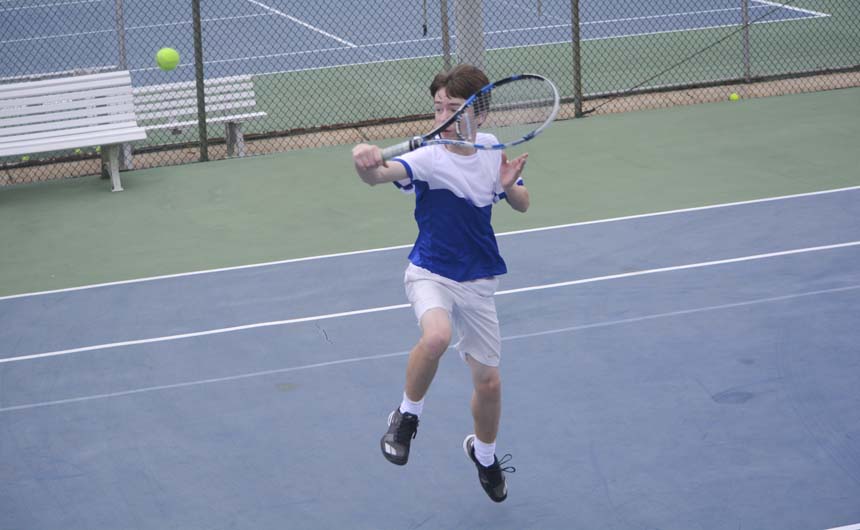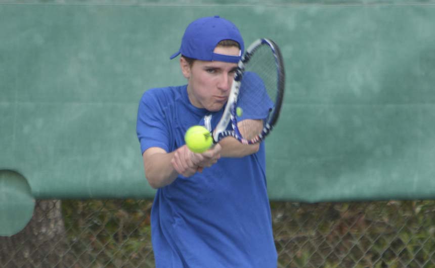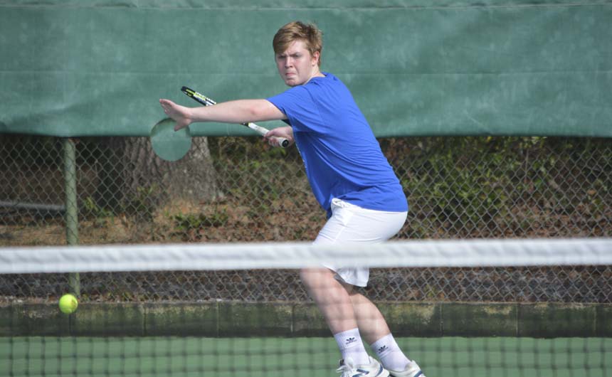 David Webster calmly returns a backhand volley. -