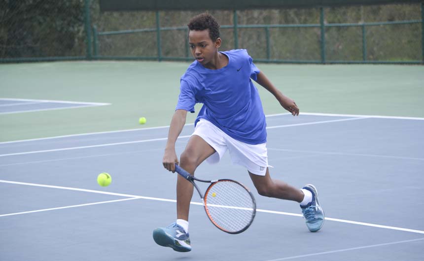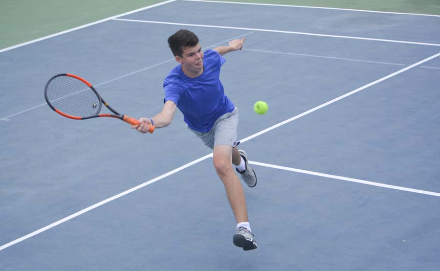 Ethan Morgan hits a forehand. -