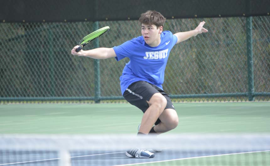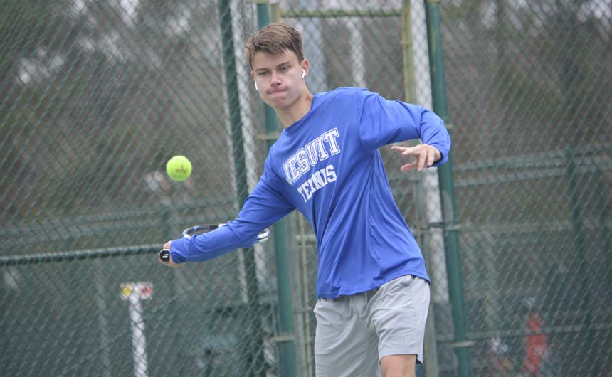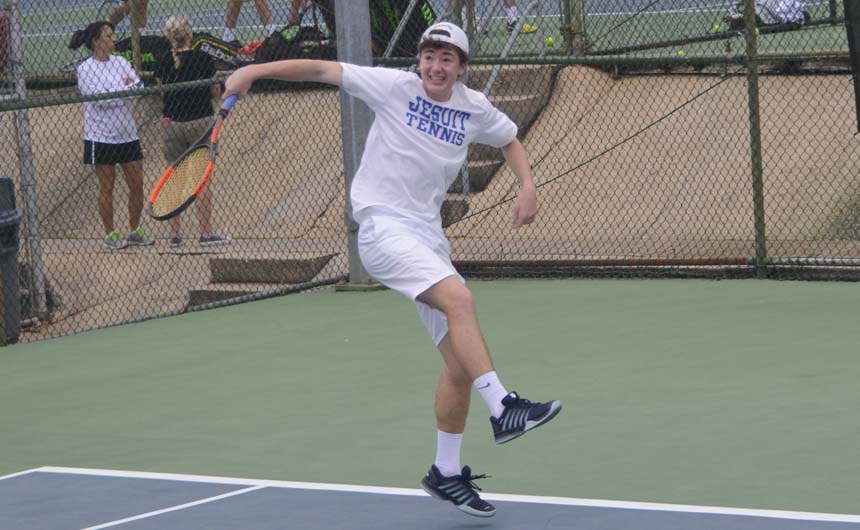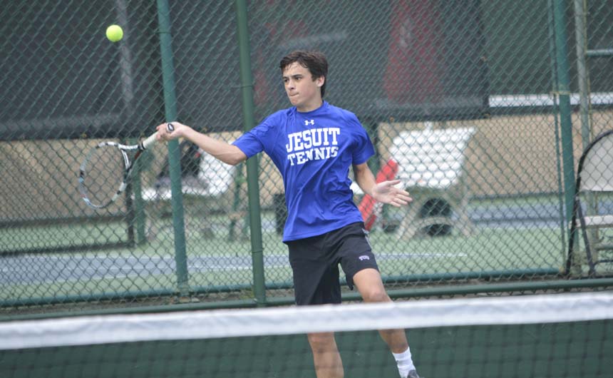 Jesuit’s A-team, which was placed in the top draw, won its opener against Jackson Academy (Mississippi), sweeping the six singles and three doubles matches for a 9-0 shutout and ensuring a spot in the top eight overall. But the sledding got a little rougher from there, as the Jays then dropped three hard-fought decisions to Strake Jesuit (Houston), Niceville (Florida), and Ocean Springs (Mississippi), all by scores of 6-3.