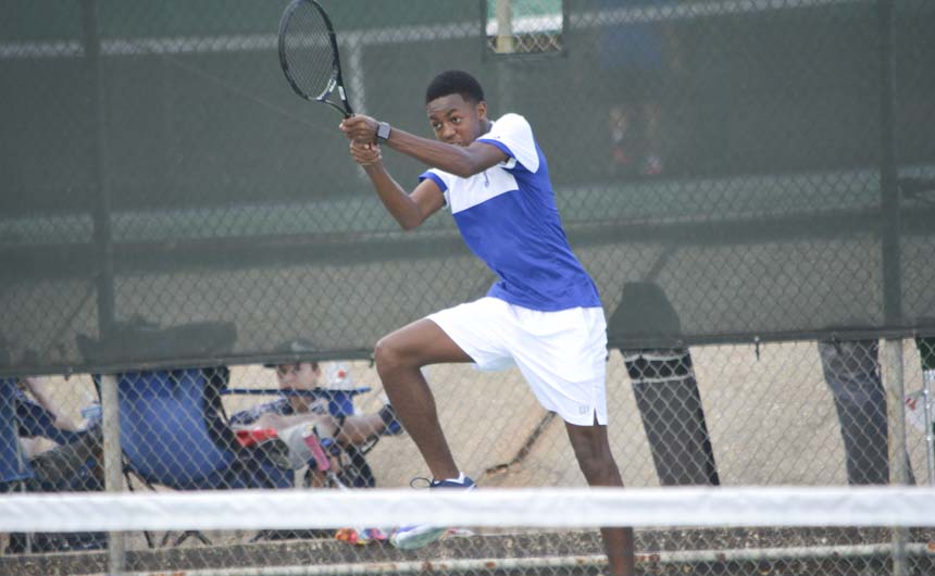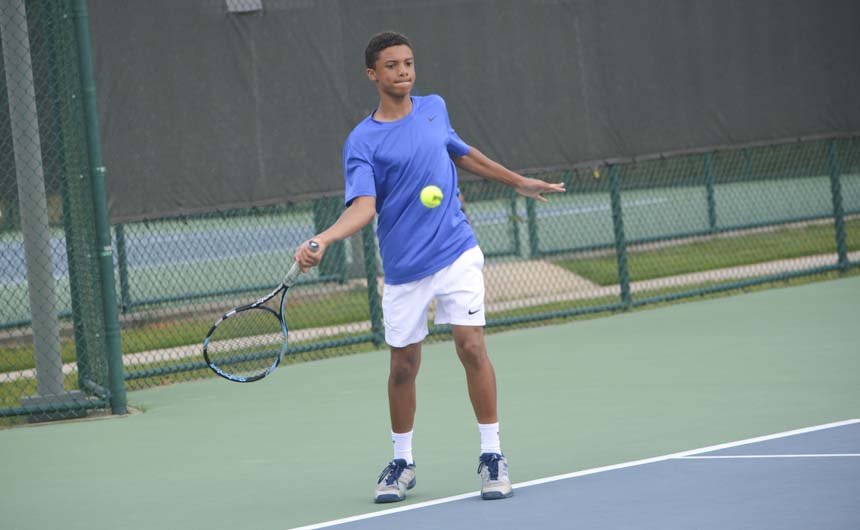Pierce Westbrook follows through on a return of serve. -