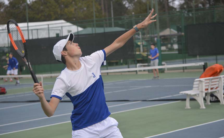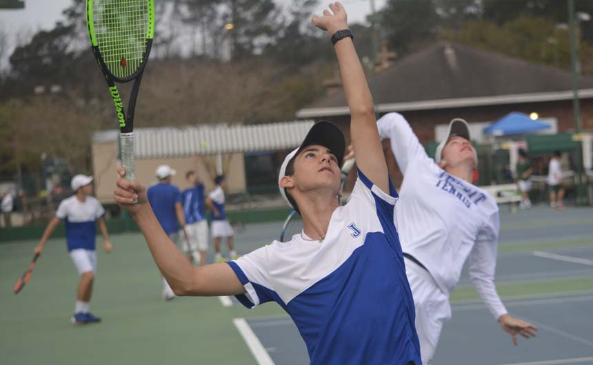 Thirty-three Jesuit tennis players descended on Alabama on February 23 for the McGill-Toolen Invitational at the Mobile Tennis Center.