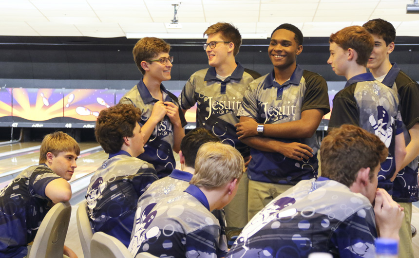 The All-Star Lanes in Kenner lit up blue as the Jesuit Varsity Bowling team bowled their way to victory at the New Orleans Regional Bowling Tournament this past Monday, March 19. Jesuit took all three games against Rummel with a score of 21-6.